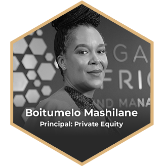 Boitumelo has spent the last 17 years in the financial services industry; 6 years of it in Banking dealing with Ultra-High Net Worth individuals at Investec Private Bank and RMB Private Bank catering to the clients banking and lending needs. 4 years in Investment Banking at Standard Bank Corporate & Investment Banking and BNP Paribas as a Credit Analyst, dealing with mid-sized corporates across a diverse range of industries. Her main responsibilities were assessing the credit worthiness of the corporates and presenting her findings to the Bank’s Credit Committees. Post the investments, Boitumelo was responsible for the proactive management of the credit risks associated with these loans. 7 years in Private Equity at the Public Investment Corporation (PIC), the largest asset manager on the African continent, focusing on mid and large enterprises in South Africa and the Rest of Africa. During her tenure at the PIC she participated in several investments, in excess of R10 billion, and served as a non-executive director on various portfolio company boards.